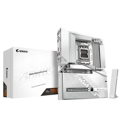 The Gigabyte B850 AORUS STEALTH ICE is a premium ATX motherboard designed for AMD Ryzen 9000, 8000, and 7000 series processors. It delivers high-end performance with DDR5 memory support, PCIe 5.0 connectivity, advanced thermal design, and next-generation networking including Wi-Fi 7.